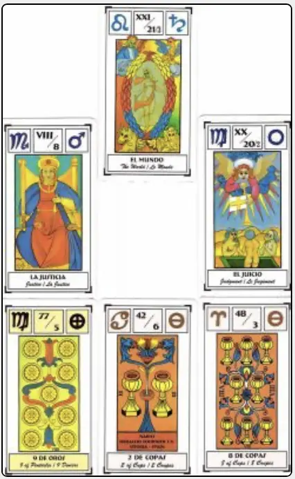 Disposicion de las cartas para el Hechizo con Tarot para conseguir un divorcio amistoso
