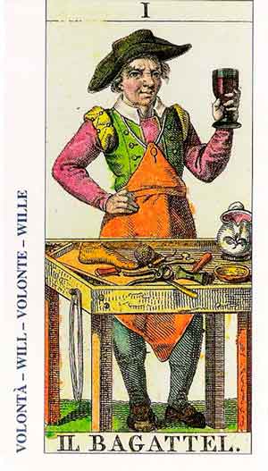 El Mago debe equilibrar sus deseos y pasiones a fin de lograr una vida mejor. La meditación es vital para su crecimiento. La vara es un símbolo fálico, el cual debe de aprender a controlar por medio de su mente. El jardín se relaciona con el reino vegetal, al igual que las rosas, las lilas y la vegetación.